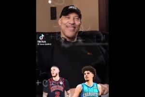 在莫兰特和儿子朗佐-鲍尔之间,他选莫兰特。他说:“哦,你搞错了。当然是朗佐-鲍尔。他可是世界上最伟大的控球之神。”