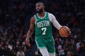 上半场,凯尔特人球星杰伦-布朗手感火热,打了15分钟13投8中,三分7中4、罚球3中3砍半场最高23分外加1篮板1助攻,正负值+7。