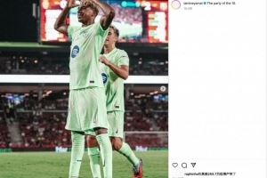 赛后,亚马尔社媒晒照并配文写道:10号的派对。