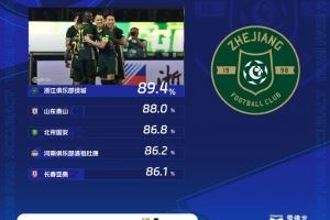 体育资讯7月28日讯 中超第18轮结束,在传球成功率榜单上,浙江队位列榜首,泰山队第二,国安第三。