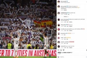 本场比赛卡瓦哈尔替补登场,赛后他也在社媒晒出庆祝胜利照片,配文写道:“国家德比胜利属于我们,为这支球队以及这样的球迷感到自豪!皇马加油!”